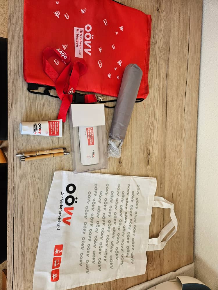 Jetzt haben sie mir ein Goodie Bag geschenkt, dass innerhalb von 2 Tagen auch noch da war. Sachen gibt’s. Aber wirklich sehr nette Geste.