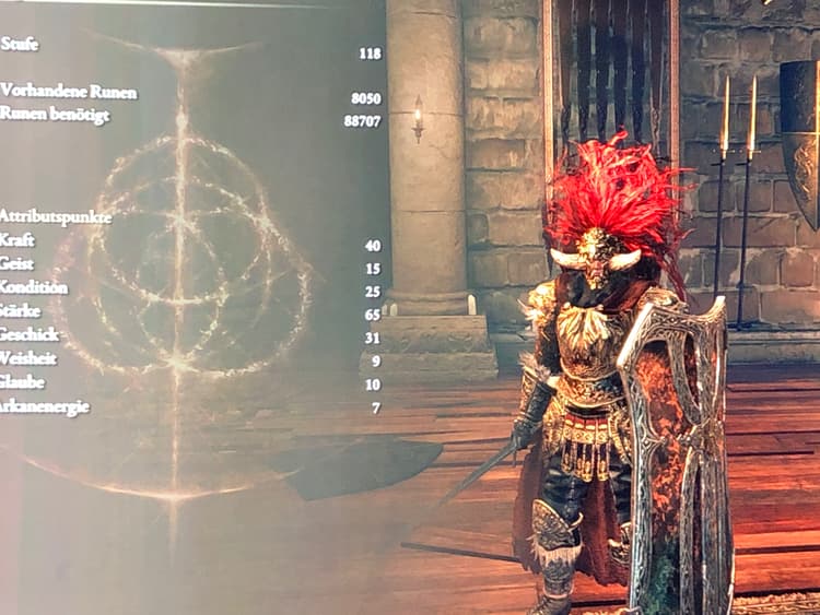 Spiele mit der Aufrufung „Mimic“ + 3, Stärke 60 und mein Schwert skilled bei Stärke auf B. Sonst hab ich nur in Kraft (45) Ausdauer (30), Geschicklichkeit (26) und etwas in FP (sehr wenig, nur für die ersten Aufrufungen) investiert.