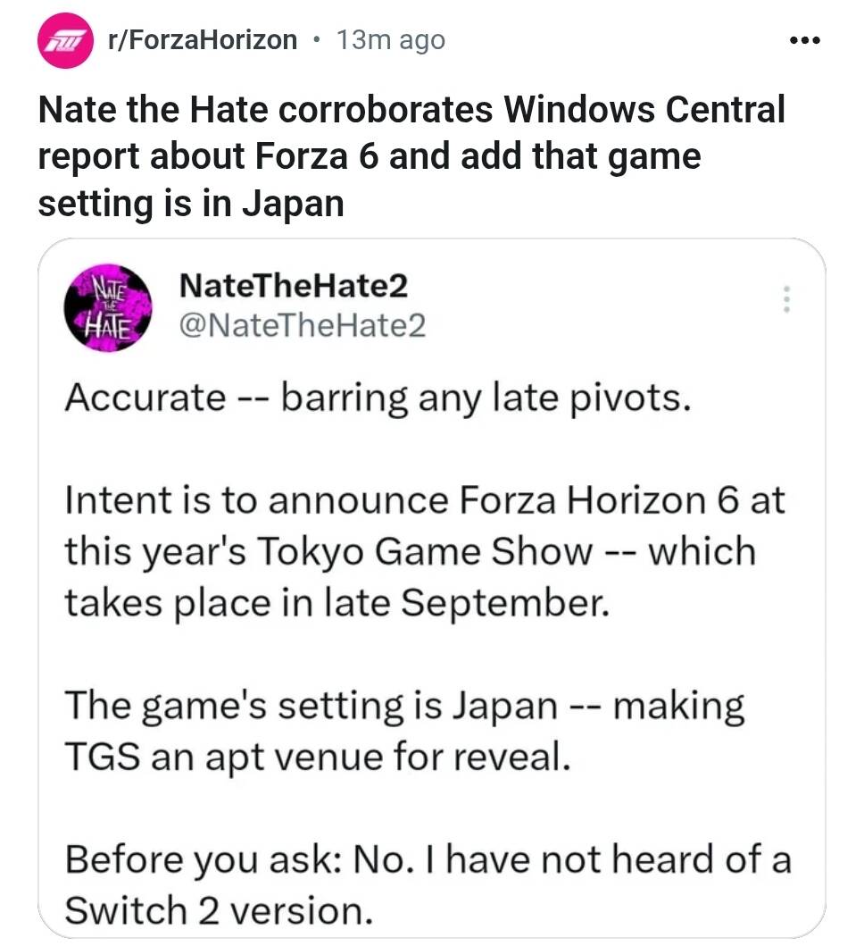 Aber Japan wurde ja schon für FH5 gerüchtet, also wahrscheinlich ist es schon. Nur halt nicht wegen dem Grund oben. ![]()