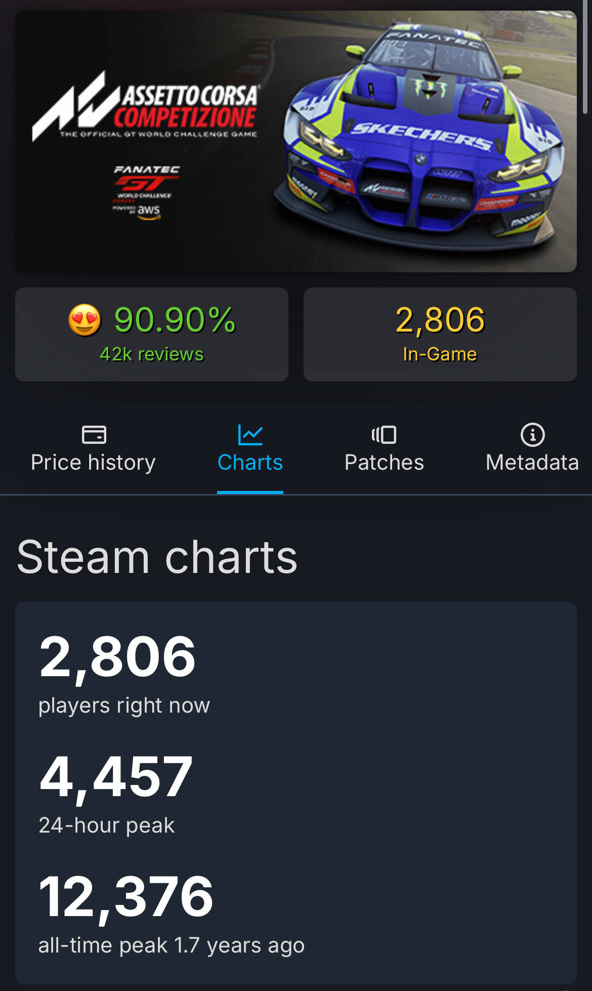 Kenn nicht viele Sim Spiele, da es absolut nicht mein Genre ist, kann mich aber zB erinnern das Assetto Corsa da ja oft gelobt wurde und da hast auf Steam ein All Time High von nichtmal 12.500 Spielern.