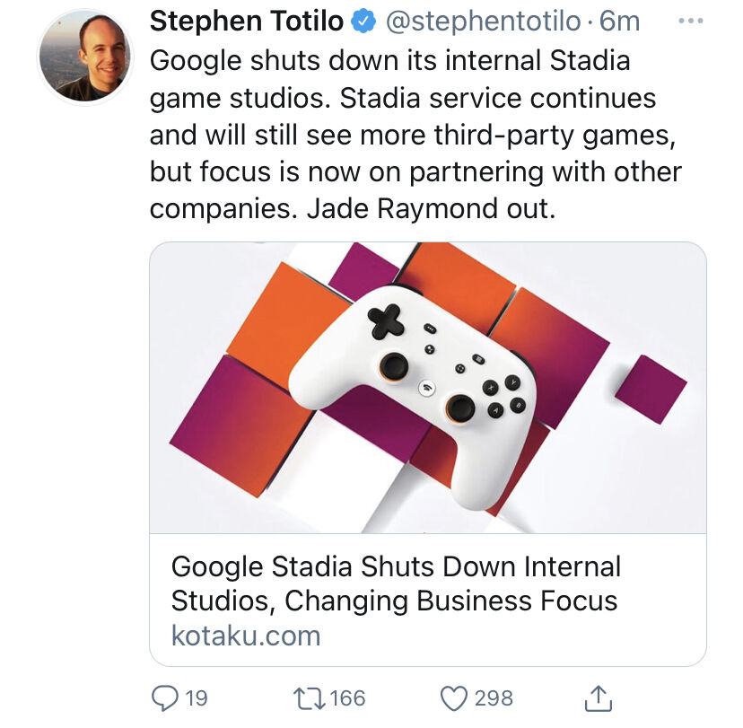 Aber aktuell ist ja nicht „Stadia“ tot, sondern die „Stadia Entwicklungs-Studios“ …
