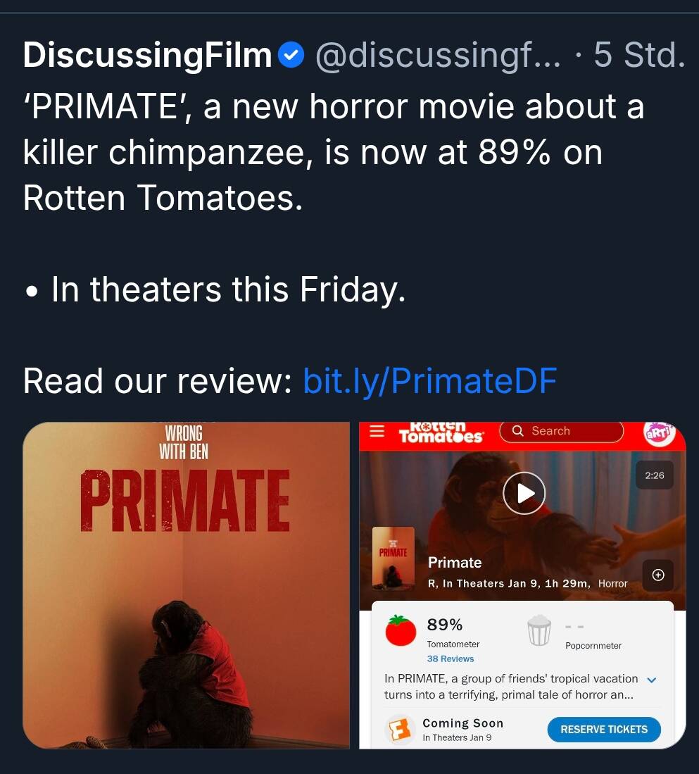 Momente ma… da kommt ein Film mit nem KILLERSCHIMPANSEN raus und ihr sagt nüscht? Ihr solltet dringends eure Prioritäten neu ordnen:
