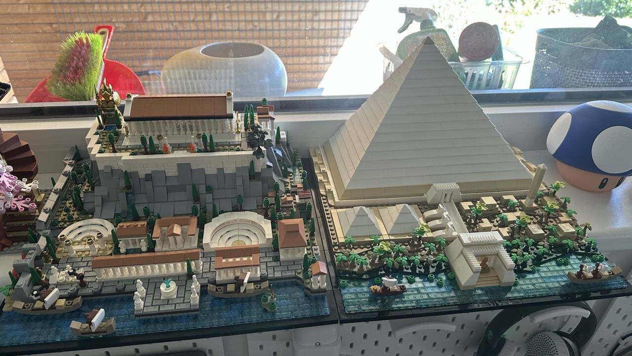 Hab mir eine zur Lego Pyramide passende Akropolis auf Temu gekauft (knapp 2000 Teile, 80 Euro). Super schön zu bauen, Bausteine IMO komplett gleiche Qualität zu Lego. Grundkonstruktion der Basis 100 % gleich wie bei der Pyramide, aber komplett ohne Farbseuche. Jetzt kommt noch eine Maya Pyramide. Mal schauen wie die ist. Passt leider vom Verhältnis nicht zu den beiden auf dem Foto, aber man kann halt nicht alles haben.
