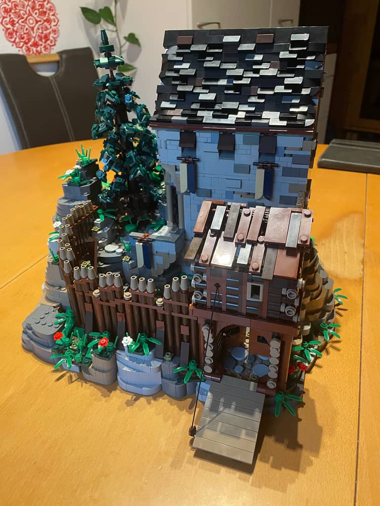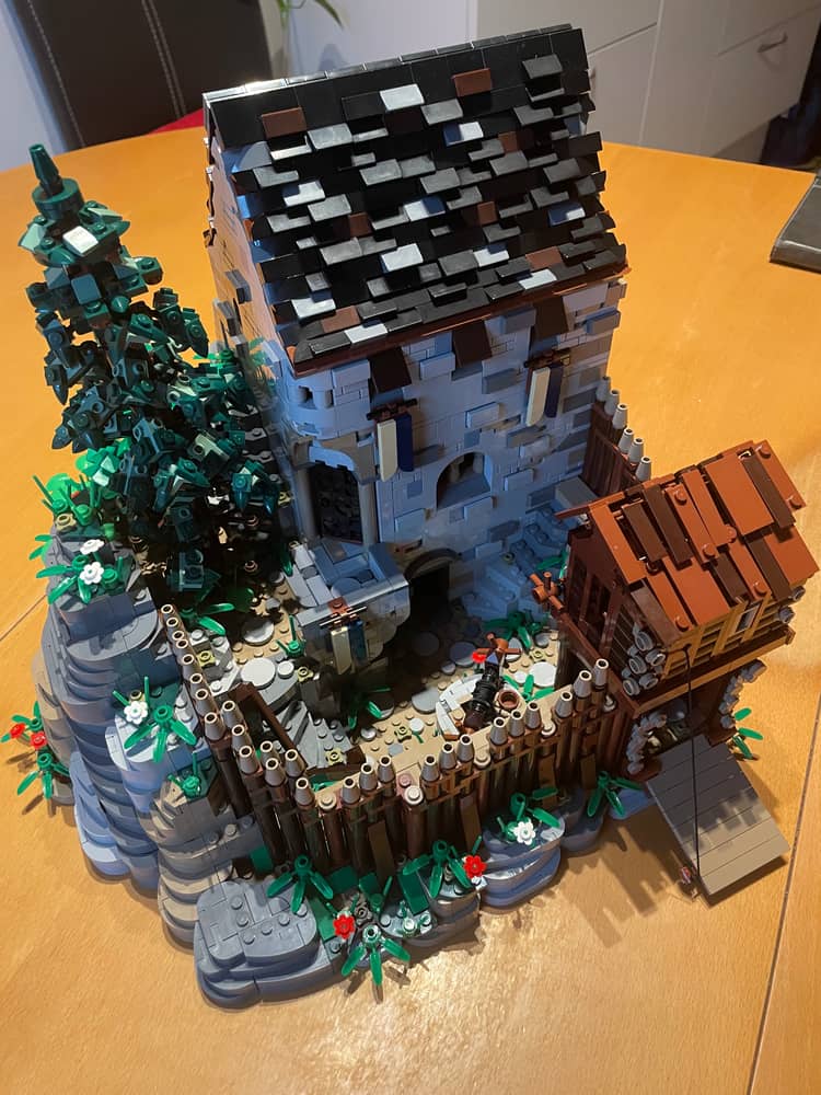Am wenigsten hat mit das Dach des Torhauses gefallen, das war echt frickelig zu bauen und hat wenig Spaß gemacht. Ständig fallen die Plättchen wieder ab wenn man neue drinstecken will. Also eher ein Lowlight.