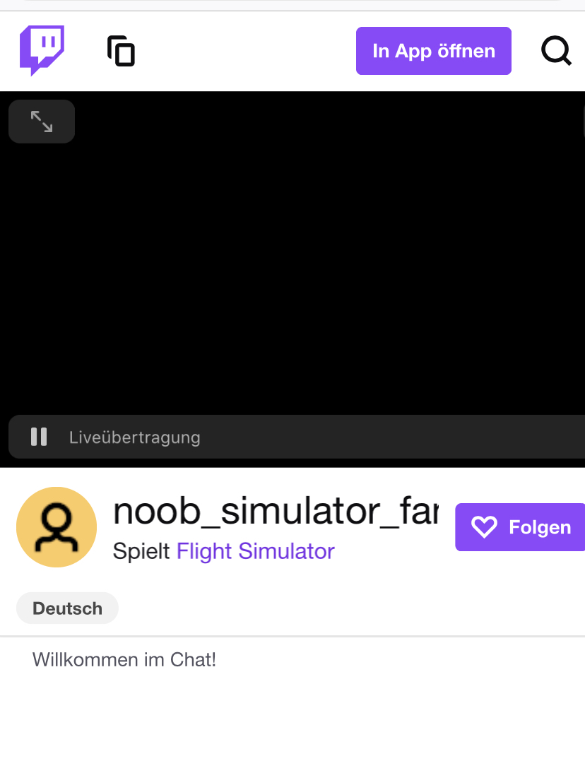 Ich hab übrigens einen Twitch-Kanal eingerichtet, auf dem ich hauptsächlich Flight Simulator und Train Simulator streamen werde.