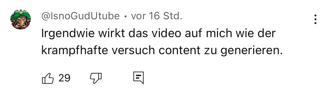 ich schau ja kaum irgendwelche youtube-sachen. aber find ich sehr amüsant was da alles in ein paar sekunden videoschnipsel hineininterpretiert wird …