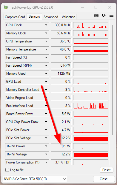 Macht es Sinn das ich beim PC ein fiepen höre, wenn die 16-Pin Power bei der Grafikkarte auf 1 Watt oder weniger ist?