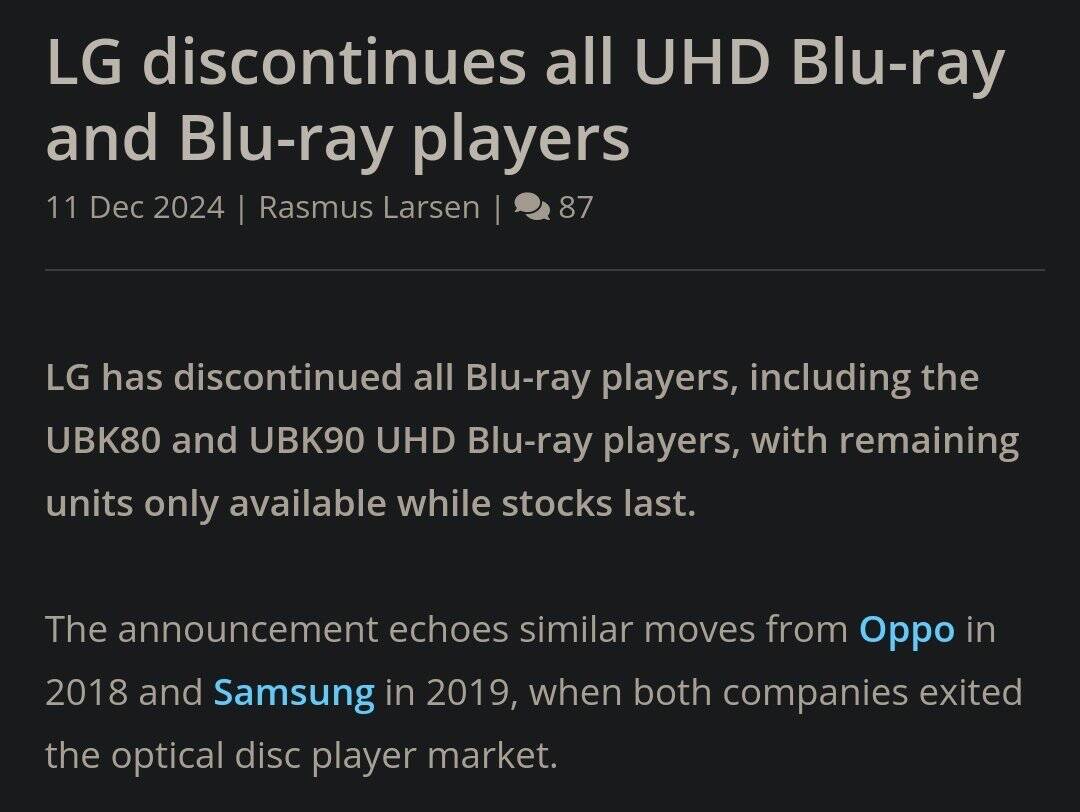 Als Samsung damals aus dem BD Player Markt ausgestiegen ist dachte ich allerdings auch schon mal, dass es das dann bald war. Aber ging ja noch einfach so weiter.