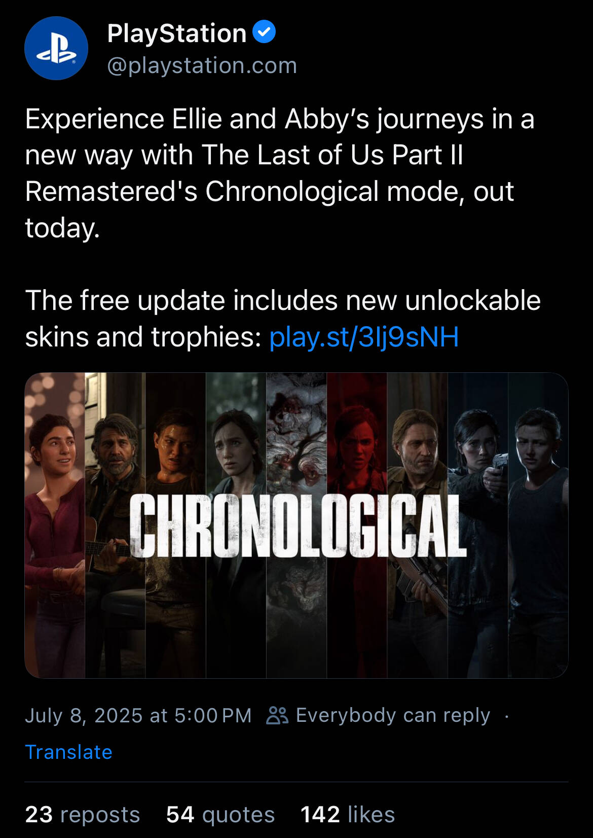 Komplett chronologisch find ich ist etwas overkill, aber sowas häts zum Release gebraucht. Dann häts den demotivierenden Neustart in der Mitte vom Spiel nicht gegeben und es hät mir evtl besser gefallen. (Nicht wegen Abby, den Twist fand ich gut, aber Gameplay technisch war die Umsetzung eine Katastrophe und das in einem Spiel wo das Gameplay eh schon gerade so ausreicht.)
