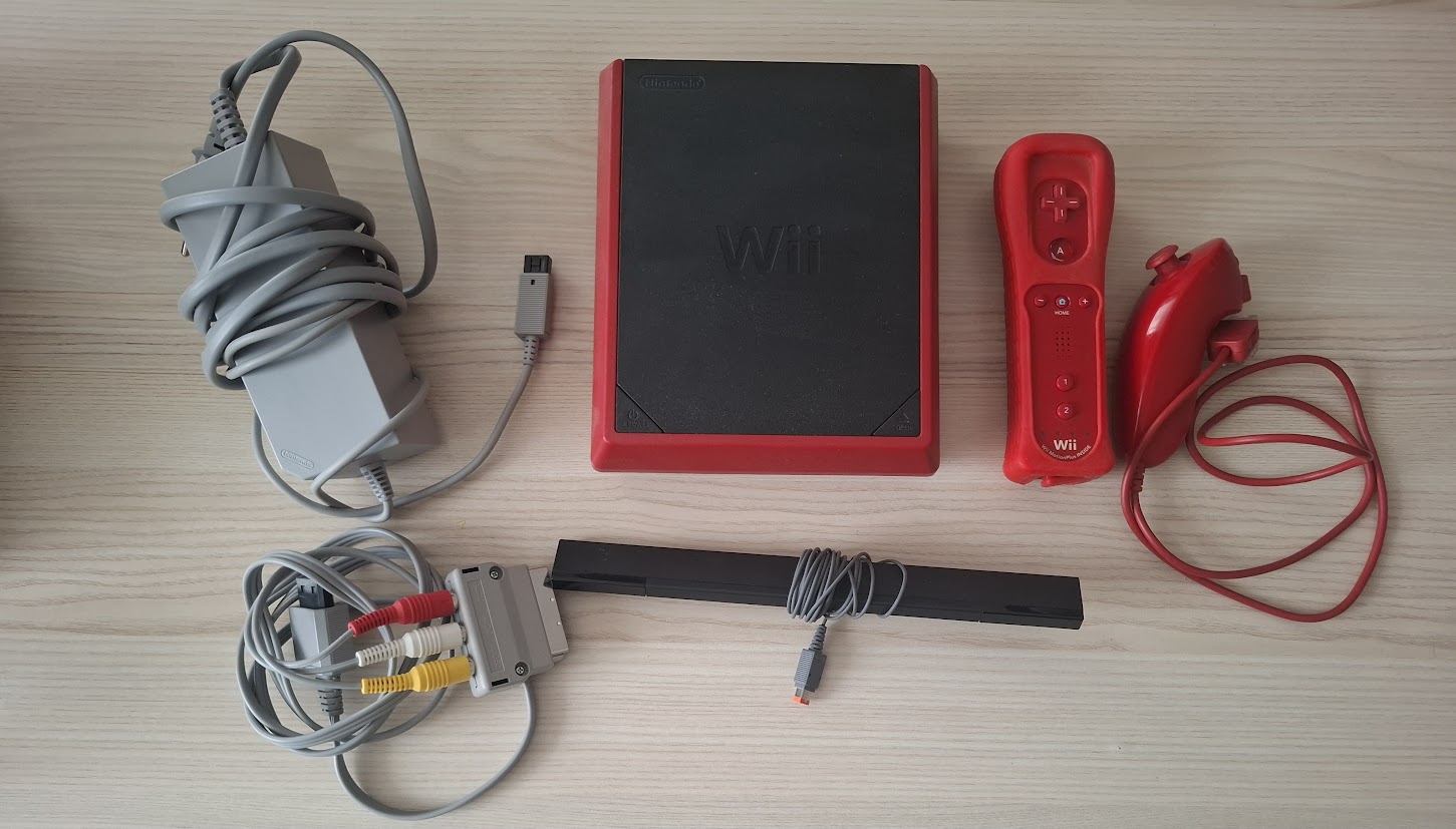 Die Wii Mini wird mit allen Zubehör verkauft, die am Bild zu sehen sind. Das Spiel ist nicht enthalten.