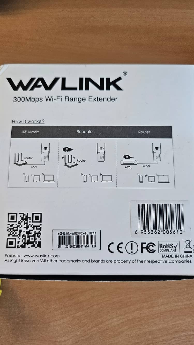 Wavlink 300Mbps Wifi Range Extender Model: WL-WN578R2