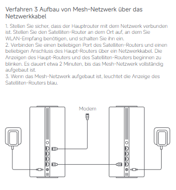 Das hat soweit ich das sehe 2 LAN Büchsen hinten. Dh ich könnte da 2 Lan Kabel anstecken, eines in den Keller und eines in den oberen Stock und dort dann jeweil eines dieser Xiaomi Mesh System AX3000 aufstellen