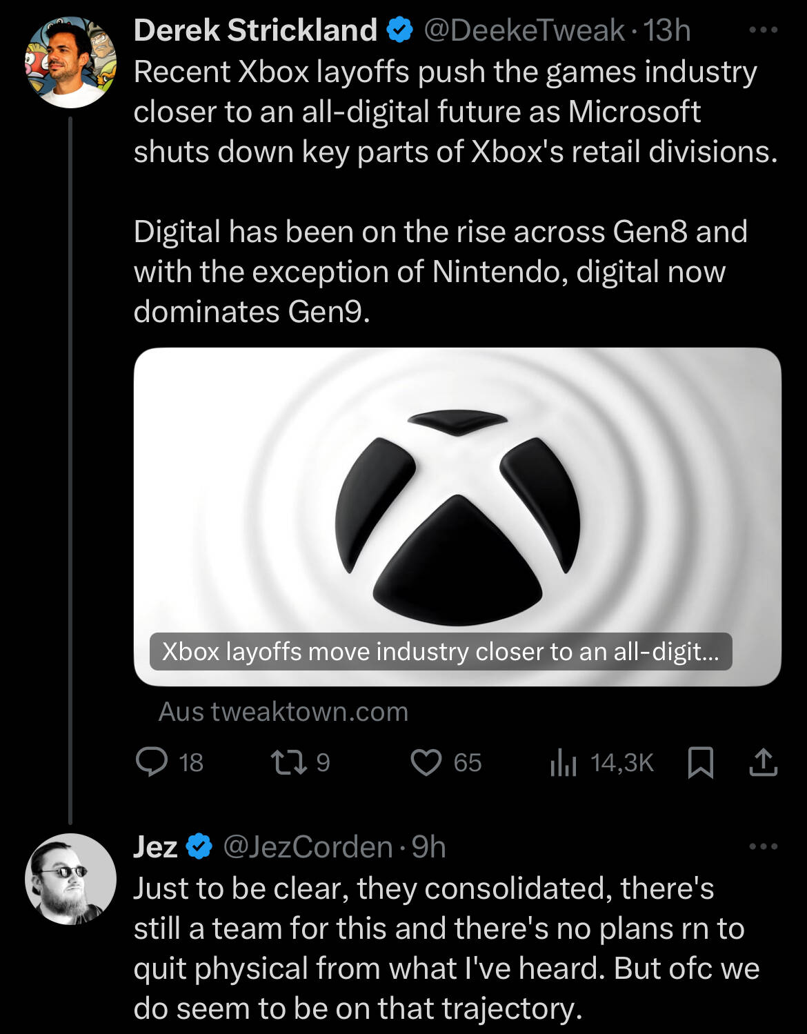 „Es gibt heutzutage bestimmte AAA-Spiele mit einem digitalen Anteil von über 80 % auf der Xbox, so dass es nicht allzu überraschend ist“, sagte Daniel „ZhugeEX“ Ahmad, Director of Research and Insights bei Niko Partners, als Antwort auf Cordens Behauptungen. Er fügte hinzu: „Das ist sicher ein Hinweis darauf, wie es mit der Next-Gen sein wird.“